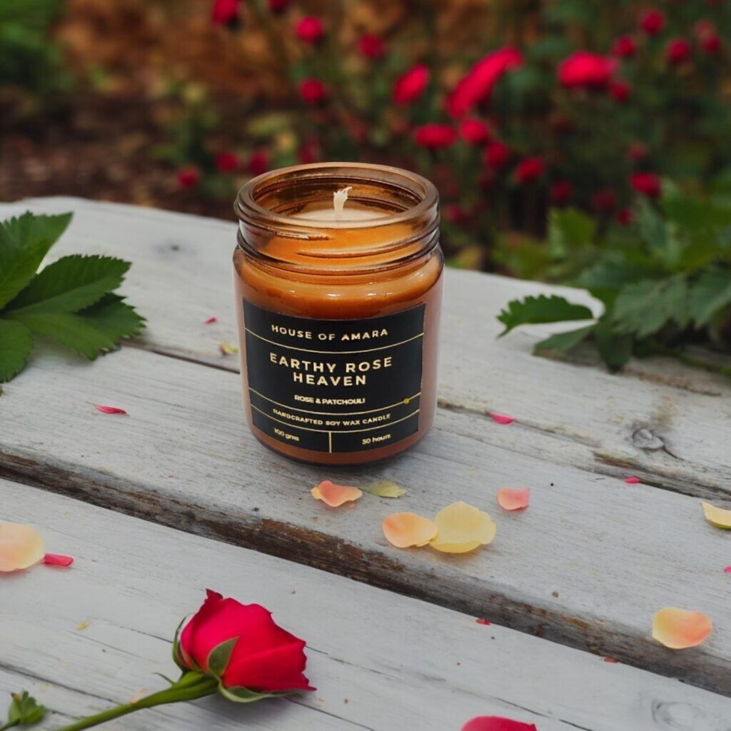 Light the earthy rose heaven candle and let the appealing aroma of rose and patchouli bring you a feeling of serenity. This scent is perfect for a self-care routine as it creates a relaxing atmosphere and a sense of refreshment. Feel the harmonious blend of rose with earthy patchouli that will fill you with love and calmness with every breath you take. It is a feminine scent that gives a relaxing atmosphere, ushering you into a state of pure bliss.