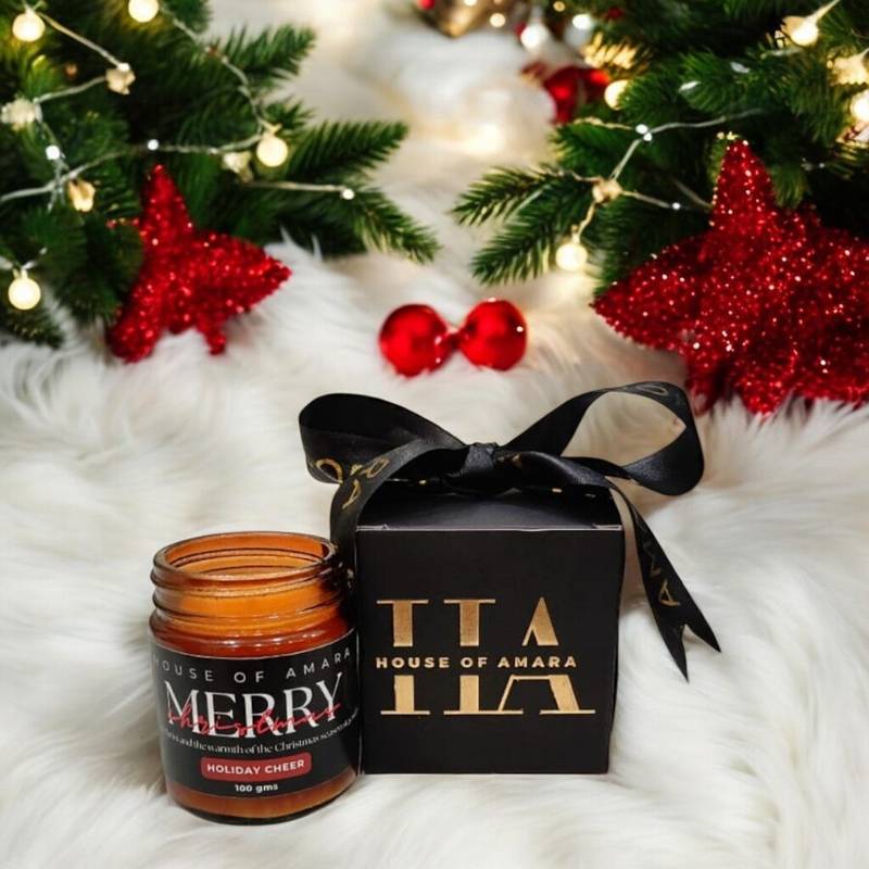 Holiday Cheer candle and let the appealing aroma of floral notes bring you a feeling of serenity. This scent is perfect for a self-care routine as it creates a relaxing atmosphere and a sense of refreshment. Feel the Holiday Cheer candle that will fill you with love and calmness with every breath you take. It is a feminine scent that gives a relaxing atmosphere, ushering you into a state of pure bliss.